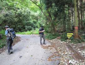 土砂崩れの跡を横断 12時36分 3週間前より崩れている。落石注意!