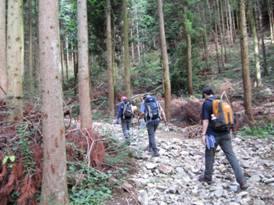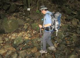 | 三週間ぶりの福智山である。前回は七重の滝コースで登ったが、今回は頂吉の登山口から福智山を目指した。福智山へのルートはいろいろあるが、このルートを利用する人は少ないそうだ。 川沿い(山の神川)に進んでいくが、結構面白く穴場である。 |