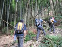 ガレ場を進む 7時43分 ガレ場から樹林帯へ、そして竹林の中へ。