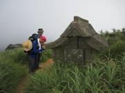 山頂へあと少し 9時54分 福智神社の祠に手を合わせて山頂へ。