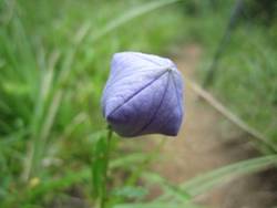 開花寸前のキキョウ。丸く膨らんでいる。 |