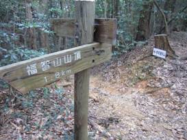 頂吉分れ(かぐめよしわかれ) 9時10分 明るい場所に到着。1年3ヶ月前、皿倉から採銅所まで縦走した時に歩いた思い出の道だ。新しい標識に変わっていた。