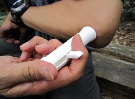 虫刺されに新兵器 11時57分 アブに刺されて毒を吸い出す。