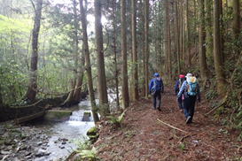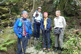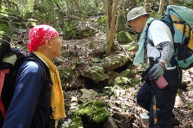| 1、頂吉(かぐめよし)少年自然の家 7時40分 〜 2、紫川起点 〜 3、満干越 〜 4、新城 〜 5、茶臼山 〜 6、満干越 〜 7、満干谷集落跡(作業小屋) 〜 8、満干谷間歇冷泉(昼食) 〜 9、満干谷集落跡(作業小屋) 〜 10、紫川起点 11、頂吉(かぐめよし)少年自然の家 13時55分 |