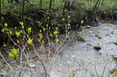 | 吉原川の水量は場所によって変化する。この場所は少なくて穏やかである。石灰岩質の地層で、場所によっては地下を流れる水もあるらしい。しかし、目で確認することは出来ないので、何とも言い難い。 |