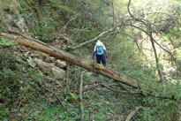 | 何度か渡渉を繰り返して林道を進んで行く 8時15分 倒木などで荒れている |