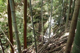 7、満干谷集落跡(作業小屋) 11時00分 この一帯が満干谷集落跡になる |