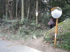 頓野林道に出会う(2回目) 8時08分 再度林道に出会った。林道をショートカットして上って行く形だ。右に進むと、またカーブミラーがある。 そこを右に入って行く。 カーブミラーから |