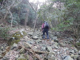 道筋が分かり難いガレ場が続く 9時19分 |