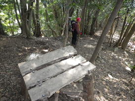 雲取山を下山 12時17分 山頂で昼食タイム。 日陰でゆっくり疲れを癒した後下山した。 ロープを手に |