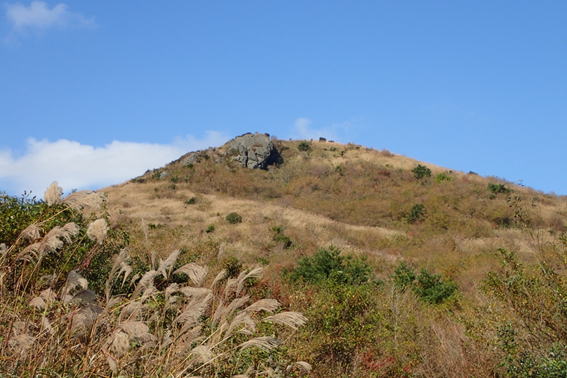 福智平から山頂を望む 10時10分 快晴! 山頂を歩く人が見える |