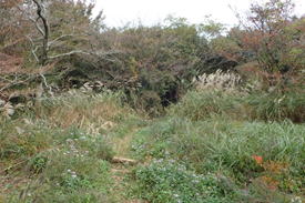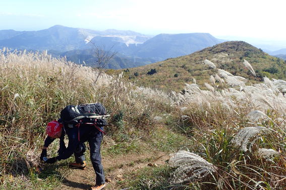 リンドウを撮影するH師匠 10時21分 ススキの中を歩くとても気持ちがいい |