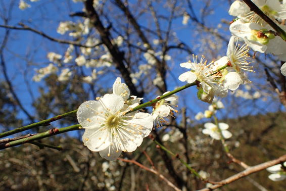 鱒渕ダム沿いの遊歩道では梅が満開。辺りは梅の香りで心地よい。
