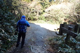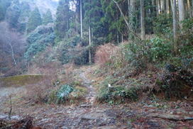 ![]() 登山道が終了、林道に出る 13時04分 |