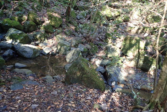 ルートは沢へ下って行く。そしてここを渡渉。滑りそうで意外と渡り難い。ご注意を! 9時28分 |