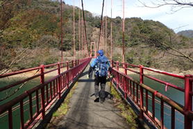 ![]() 赤い鱒渕橋が見えてきた 7時53分 |
