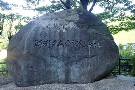 路肩の横に鱒渕ダム建設記念碑 |