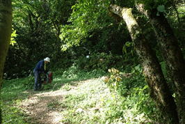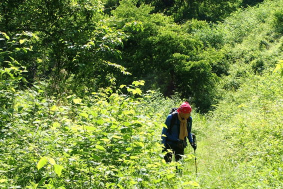 一旦森を抜けると、そこは鬱蒼(うっそう)と覆い茂る藪 8時38分 直射日光が暑い |