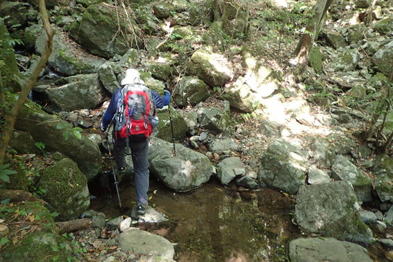 一旦沢へと下り、注意して渡る 9時08分 Y本さんはスイスイ、私はヨロヨロ情けない |
