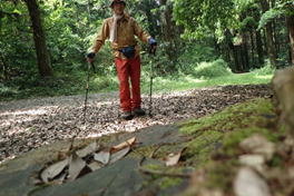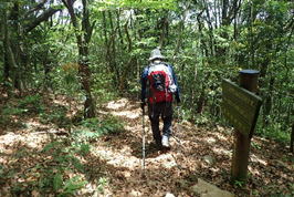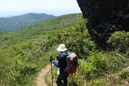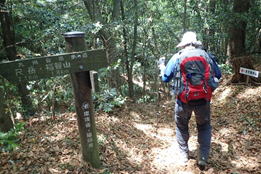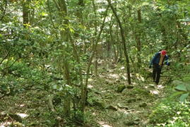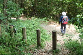 ![]() 登山道を踏み締め、黙々と上るH師匠 |
