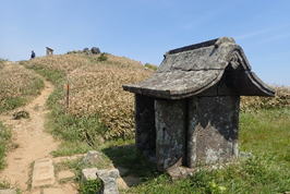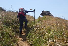 続いて二つ目の祠に向かう。山頂より少し下ると豊前小笠原藩・福智神社の上宮がある。 |