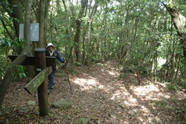 林の中は落ち葉が降り積もり、ルートが不鮮明。だが、Y本さんは勝手知ったる福智山。 9時11分 |