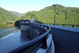 梅雨明けして夏本番! 鱒渕ダムも濃い緑に包まれている。