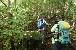 カラスのクチバシは登山道の真ん中にある岩の名前→これを踏むと安全登山のジンクスとか? |