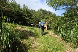四畳半岩から山頂を望む 11時09分 緑濃いクマザサが広がる。これぞ夏の山頂風景!