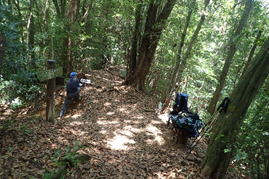 | 荒宿荘から5分程進むと分岐に出会う。左右どちらに進んでも山頂に通じている。 |