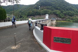 ます渕橋を渡って堰堤へ向かう 13時51分 橋を渡っていると、小雨がパラついた |