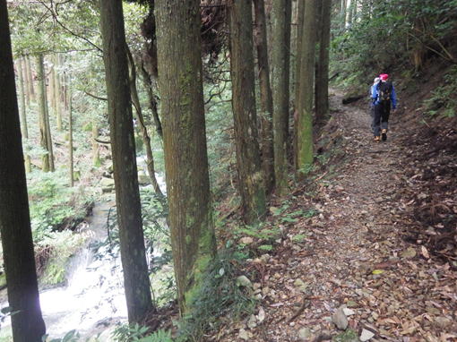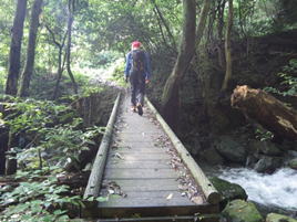 激しく流れる川の横を歩く 8時11分 歩いていて、とても気持ちの良い登山道。