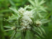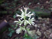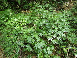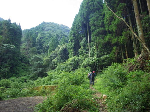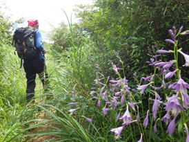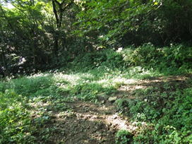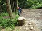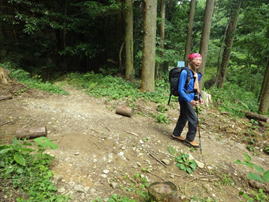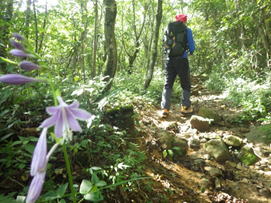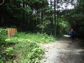 この場所はつい最近まで森林伐採が行われていた場所である。その伐採の為に整備された林道が登山道と交差している。日当たりがいいので花が目立つようになった。 |