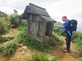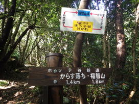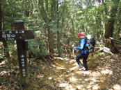 鈴ヶ岩屋への分岐を通過 11時47分 常連さんが草刈してくれた鈴ヶ岩屋への道(右)