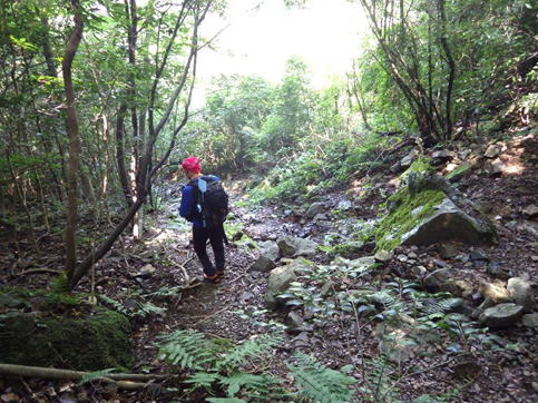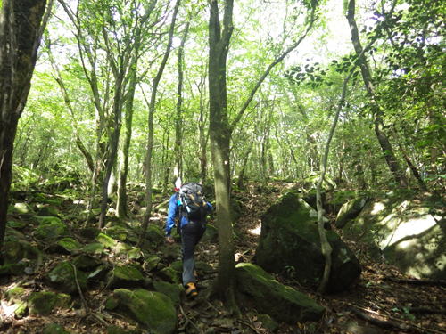 ホッテ谷新道を淡々と上る 9時56分 汗がしたたり落ちる