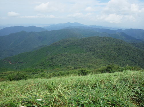 クマザサ帯を上る途中、振り返ると雲取山、金剛山そして皿倉山までクッキリ 10時34分