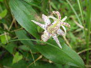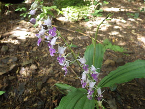 今夏久しぶりのお天気に恵まれた。「夏はやっぱりこうじゃないと!」 毎年この時期になるとナツエビネの季節、木漏れ日を浴びて踊るような可憐な花は、なかなかお目にかかれない。 |