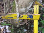 13、ホッテ谷分れ 右へ 14時06分 1.8のコルから22分でホッテ谷分れまで快調に下って来た。ここには鱒渕ダムへの標識は無いが、右に下ると鱒渕ダム登山口に通じる。 標識確認 |