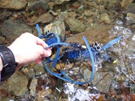 迂回路へ 9時54分 橋が倒壊していてどうしようかと思ったが、5メートル程左に迂回渡渉場があった。ネットに石が入れられてとても歩き易い。感謝! ナイス! |