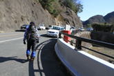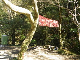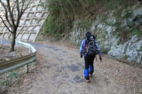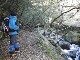 10、大杉渡り 12時53分 大杉渡りから少し下ったところで休憩。 鱒渕ダムから福智山への九州自然歩道は補修工事中だった。 サングラスの落し物 |
