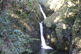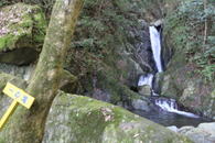 二の滝 8時48分 細く長い2段の滝だった。勢いよく流れ出る滝はまるで「荒れ狂う龍の如し」だ。 更に上へ |