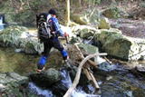 広い河原に行き着いた 9時15分 次はこの川を渡ることになる。 水量が多いのでルートを慎重に選んで岩を渡って行く。 バランス良く |
