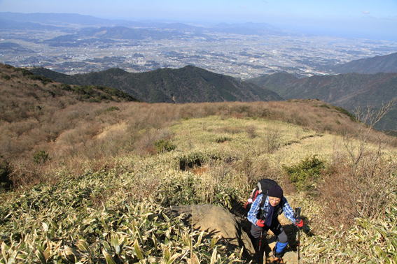 荒宿荘からはクマザサ帯の中を上って行く 11時23分 下界も視界良好