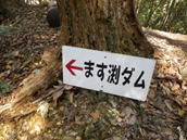 11、1.8(イチハチ)のコルの分岐 13時13分 この分岐から左に下って行く。表示をよく見ていないと真っ直ぐ進んでしまうので注意だ! ます渕ダムへ |