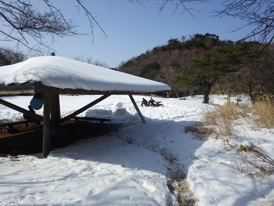 ![]() 平になった山頂には雪が積もっている。 春には水仙が咲いて、ハイキングをする人で賑わう。 |