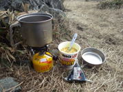 ![]() 大岩の陰で昼食 |