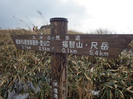 | 4、福智平から福智山山頂を望む 11時01分 あともう一息で山頂だ! 新設された標識では、ここは福智平ではなく、「鈴ヶ岩屋」という地名になっていた。 |