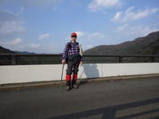 1、鱒渕ダムの堰堤を歩きスタート 8時43分 |