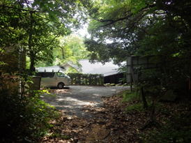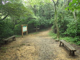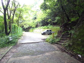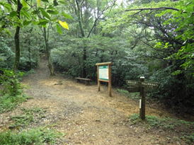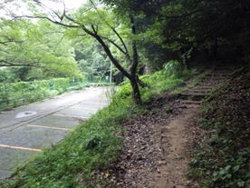 上野峡登山口から舗装道路を真っ直ぐ10分程下ると、今朝出発した綺麗なトイレのある場所に通じる。一本道なので迷うことはない。 |