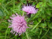 八丁のケルンに立ち寄ろうと思っていたが、濃霧の中、足下に咲く花々に気を取られて、不覚にもケルンを通り過ぎてしまった。そしてこの辺りで、ウツボグサを撮影していると、感じの良いご夫婦から「きままに登山靴の方ですか?」と、尋ねられた。突然のことでビックリ! 嬉し恥ずかし、声を掛けて頂きありがとうございました。 |